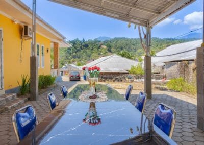 Mahawu Mountain View is located in a peaceful village near Manado, offering guests the best of both worlds—proximity to the city while being far enough to enjoy the quiet beauty of rural life. The village itself is surrounded by lush coconut plantations and volcanic landscapes, providing a true retreat from the hustle and bustle of daily life. Just a short drive from the guesthouse, you’ll find the vibrant city of Manado, known for its rich culture and delicious cuisine.