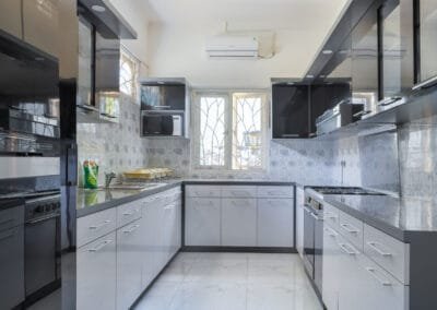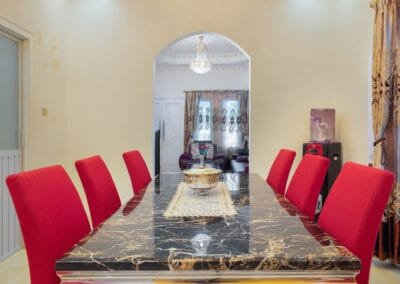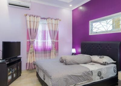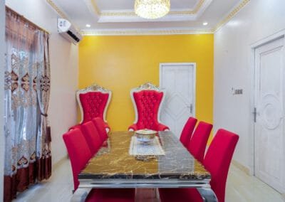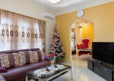 The first house is a solid concrete building, offering two spacious bedrooms designed for restful nights with comfortable beds and soft linens. The living room is a cozy space where guests can relax and watch TV after a long day of exploring. There’s also a dining room where you can enjoy meals with family or friends. The kitchen is fully equipped with everything you need to prepare your meals, including a water dispenser and a washing machine for added convenience. The house also features a private bathroom and shower, ensuring complete privacy for guests. This sturdy construction makes House 1 a comfortable and cool retreat from the tropical heat.